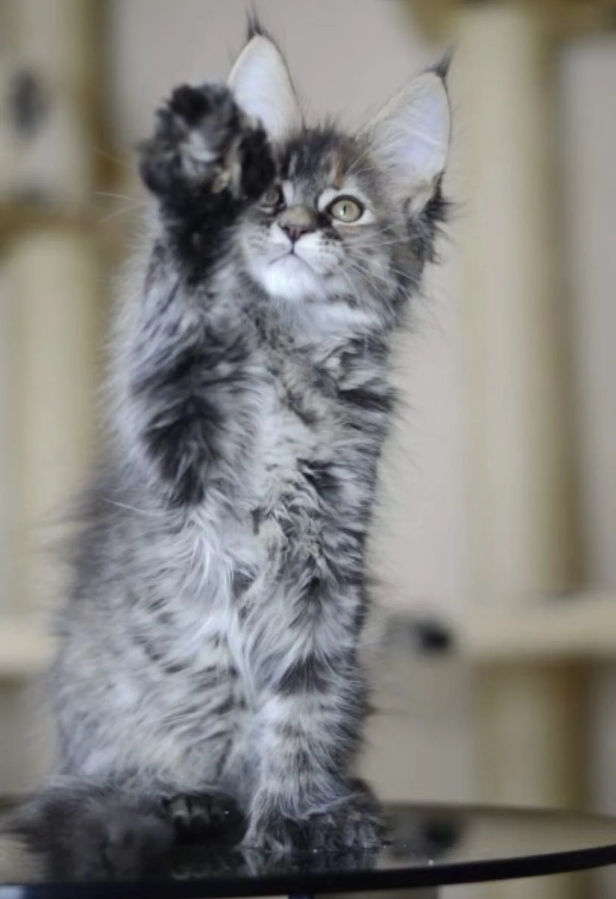 Introducing Poly Oly, the majestic polydactyl Maine Coon queen hailing from Russia. With her regal presence, she commands attention, her extra toes adding a unique charm to her grand stature. Agile and athletic, Poly Oly moves with the grace of a feline acrobat, effortlessly leaping and navigating her surroundings with precision.